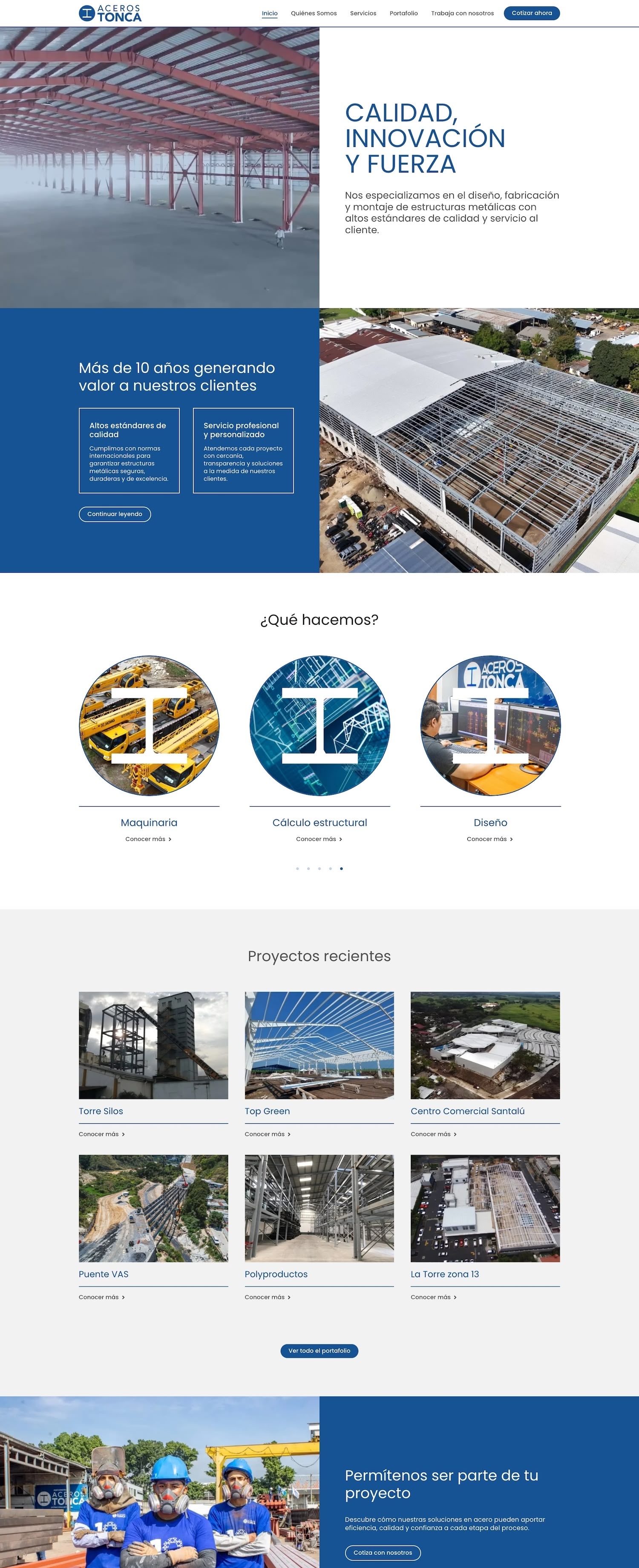 Aceros Tonca es una empresa guatemalteca fundada en 2014 que se dedica al diseño, fabricación y montaje de estructuras metálicas, ofreciendo altos estándares de calidad y un servicio personalizado a nivel nacional.