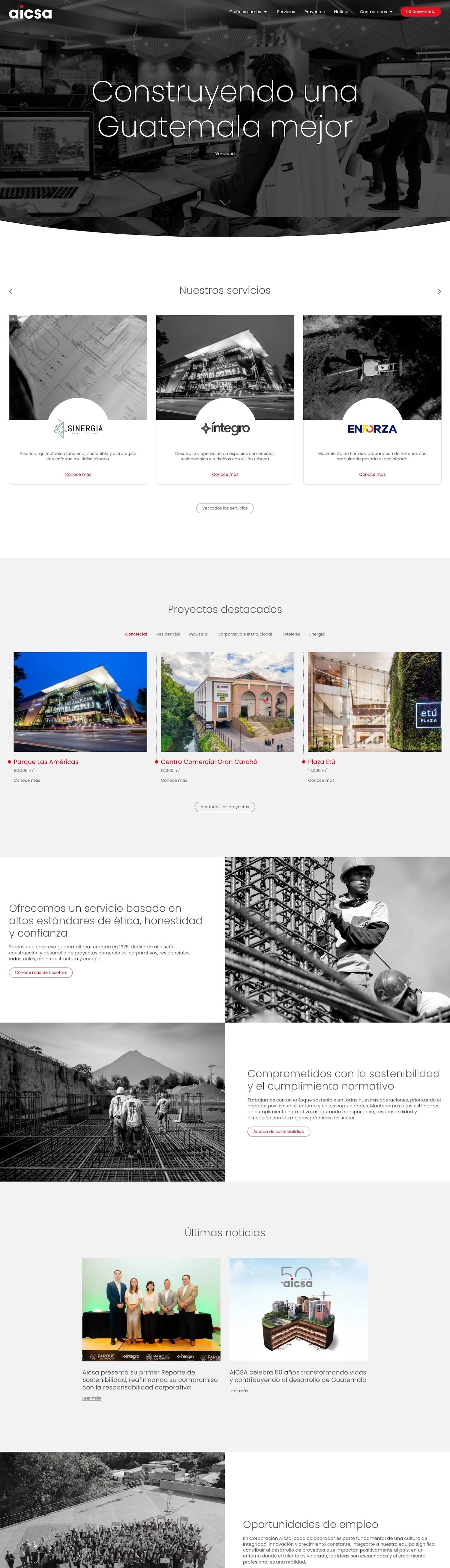 AICSA es una corporación con más de 50 años de trayectoria que desarrolla proyectos inmobiliarios innovadores y de alto impacto en Guatemala. Se caracteriza por crear soluciones sostenibles que transforman comunidades, integrando diseño, construcción y gestión con altos estándares de calidad.