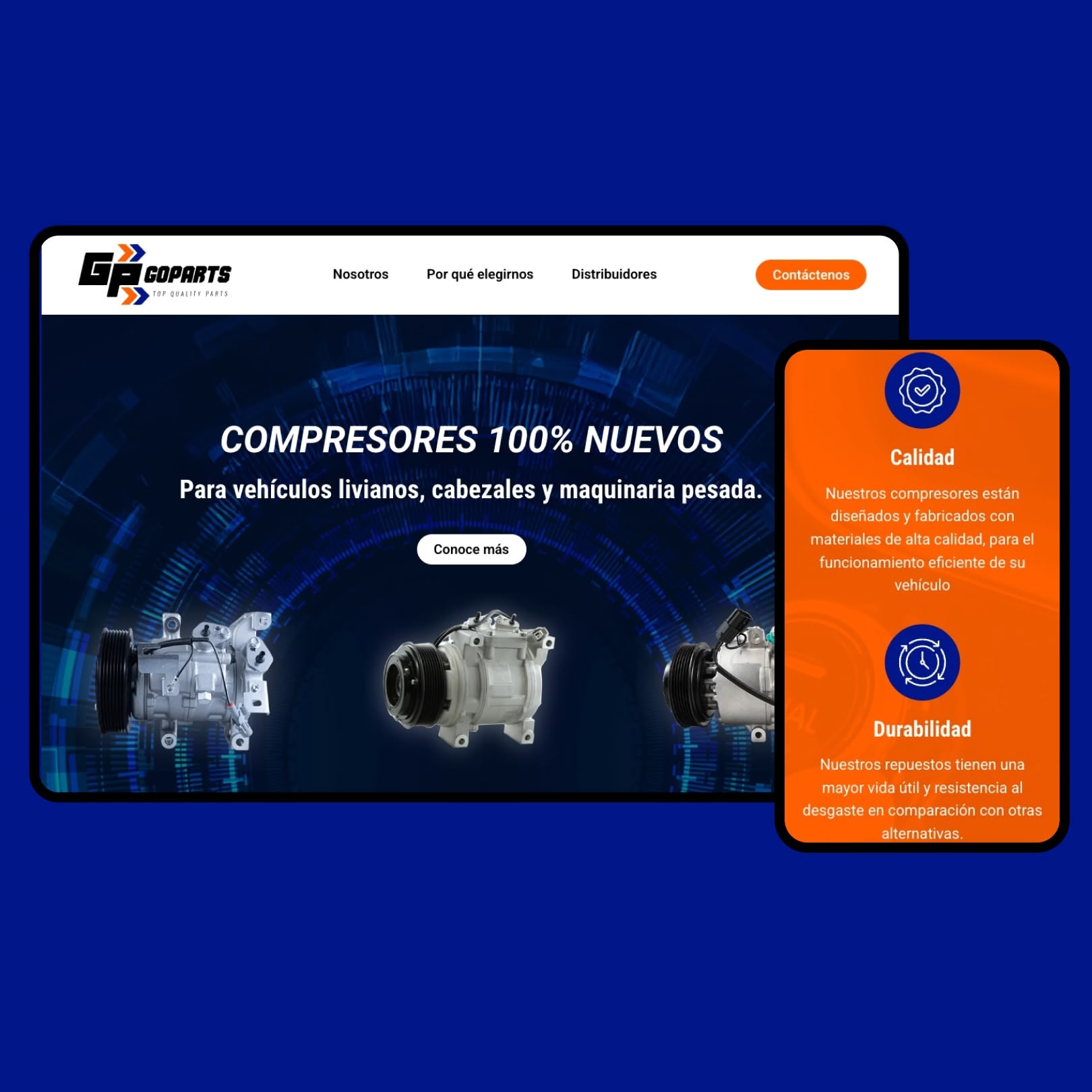 Go Parts fabrica compresores de aire acondicionado diseñados a la medida para cada modelo de vehículo, garantizando alto rendimiento, durabilidad y un ajuste preciso.